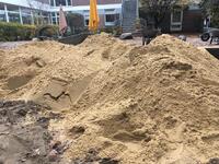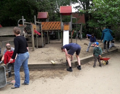 Heute haben wir, Dank der Hilfe unserer fleißigen Kita-Väter, 9 Tonnen Sand auf die Sandkisten verteilt.